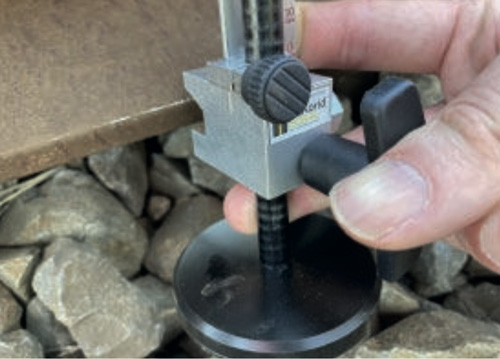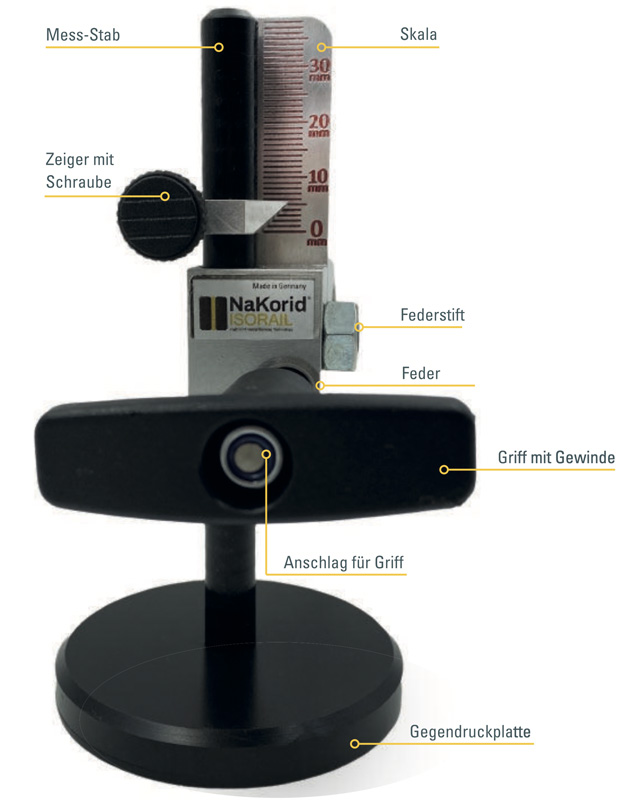 L’effet de danse se mesure au moyen de dansomètres. Ceux-ci se placent sous le patin du rail et sur chaque file à hauteur des points de mesure du nivellement.