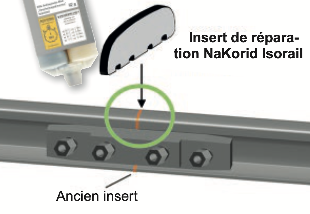 Le nouveau procédé de réparation est rapide est simple. L‘insert de réparation NaKorid Isorail est composé d‘un matériau composite nano-composite robuste spécialement développé.